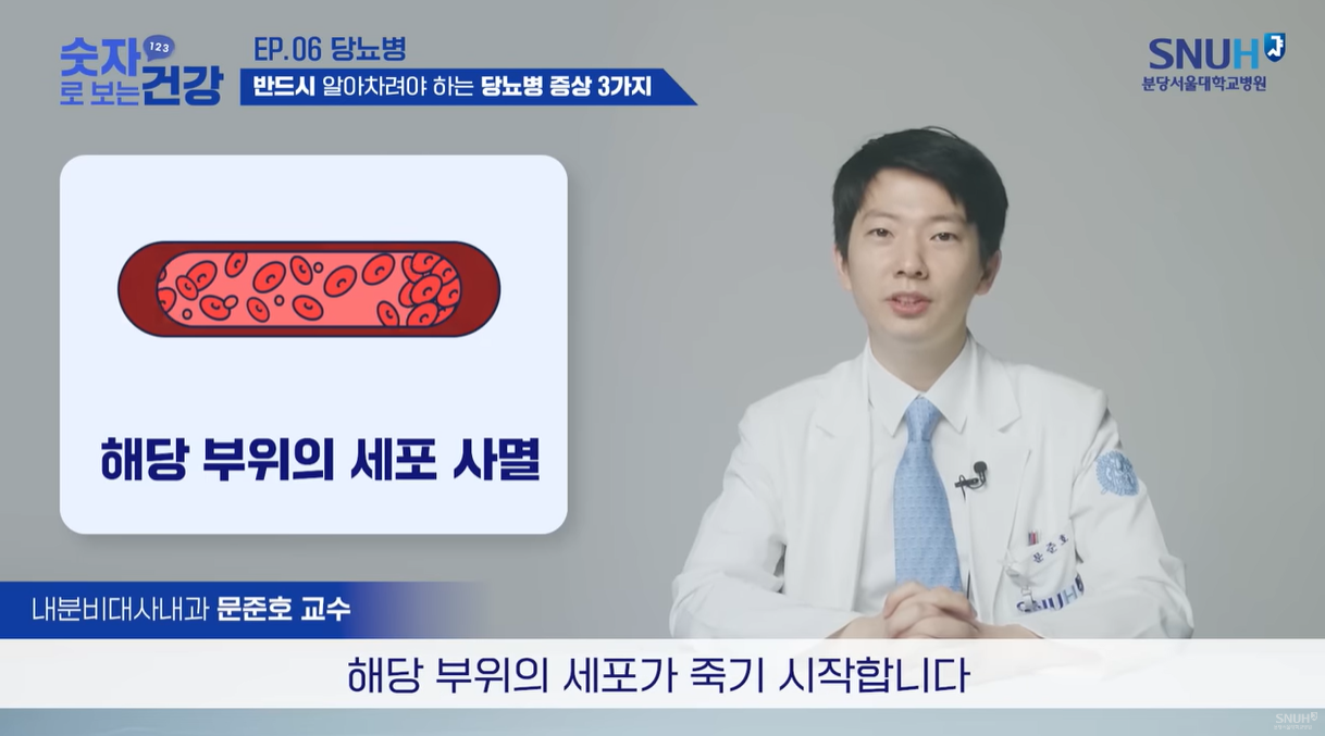 하지만, 이런 상태까지 진행된 당뇨병은 상태가 심각하기 때문에, 분당서울대 병원 문준호 교수님은 환자분들에게 무증상이라고 하신다고 합니다. 왜냐하면, 무증상일떄부터 관리를 해야 하는 병이기 때문이라고 합니다.